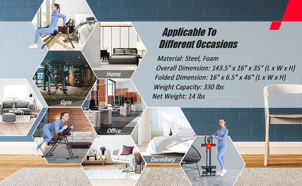- 【Adjustable Height & Intensity】 The workout machine features a 3-level height adjustment mechanism. Simply inserting the pin into different holes, you can change the angle to realize different workout intensities and find your suitable level or challenge yourself.