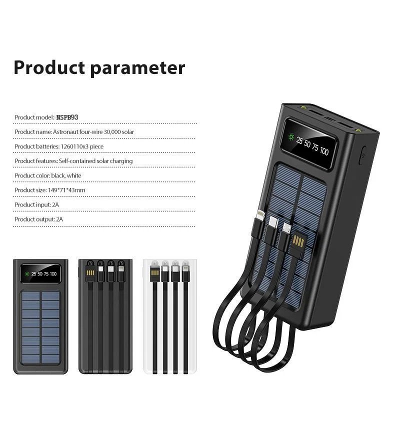 Support solar charging. It will never be powered off, and it comes with four charging cables, adapting to all kinds of equipment, and very suitable for outing use.